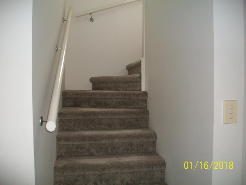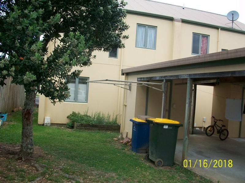 Clean and tidy , three bedroom townhouse . Upstairs has three bedrooms ( maint bedroom has a huge walkin wardrobe or could be used as study room), family bathroom; downstairs has open plan living with modern kitchen . There is one carport plus one parking area.